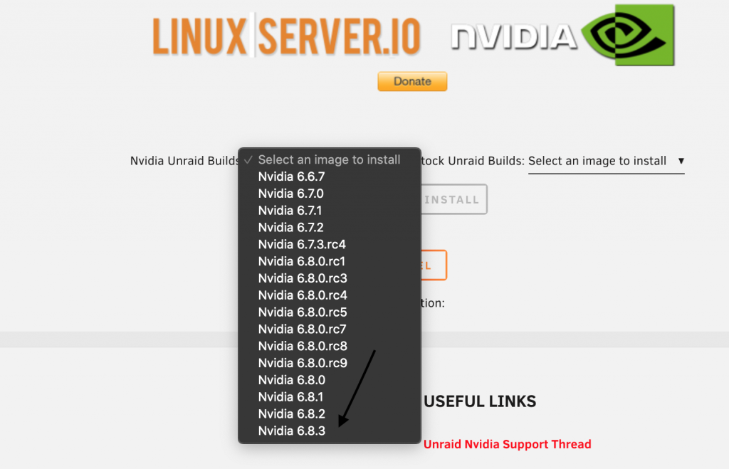 二、然后会来到这个界面,或者点击SETTINGS->Unraid Nvidia进入,据自己UNRAID版本下载相应的Nvidia显卡驱动,然后系统会要求重启