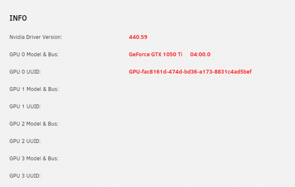 三、重启后,再来到这个界面,会看到系统已经识别出显卡了,然后复制GPU UUID,红字部分,备用。