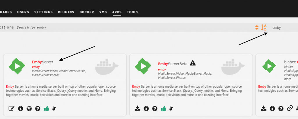 五、来到Apps界面,右上角搜索输入emby,点击第一个emby server来安装,
