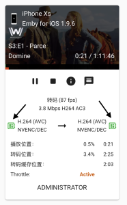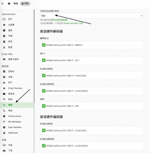 注意:emby启用硬件转码需要一个有效的 Emby Premiere 订阅。否则这个界面只会显示已打开,而不会真正的启用显卡解码与编码!